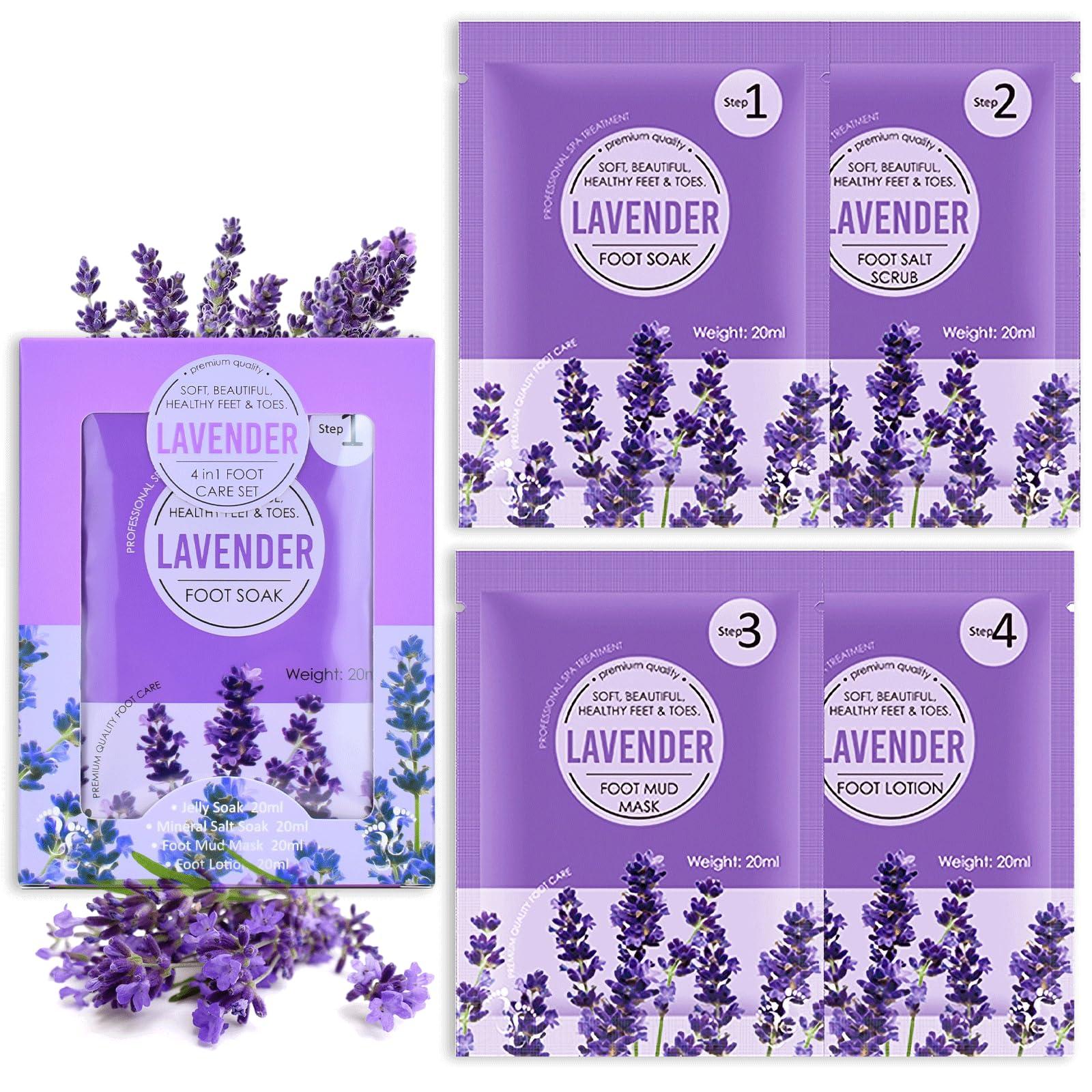 LAVENDER 4 in 1 Foot Care Set Food Soak, Scrub, Mud Mask, Lotion